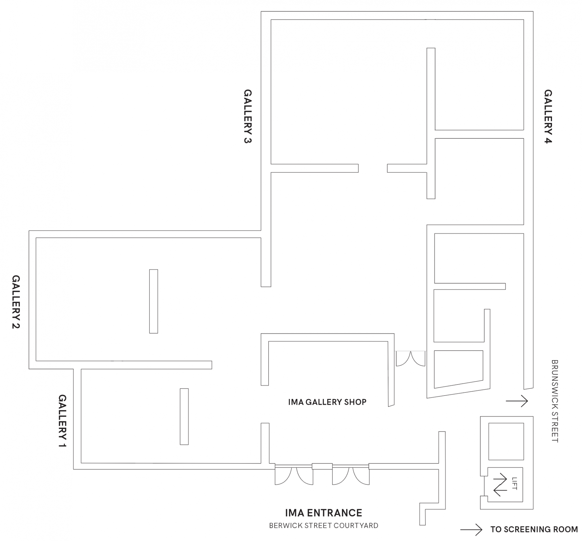 Untitled (27°27'34.9"S 153°02'12.4"E), 2022 Untitled (27°27'34.9"S 153°02'12.4"E) (2022), utilises space and surface to enclose and house the collective exhibition. Individuals are invited to perceive the outer space of the institution and experience the work in relation to place as a compass to navigate and understand the space and all the works displayed at the IMA. |